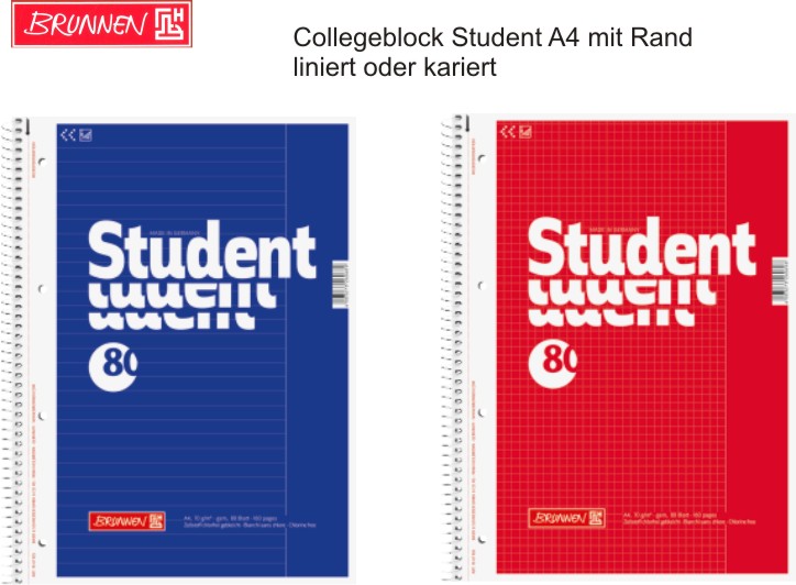 Mobile Preview: BRUNNEN Collegeblock Student A4 mit Rand
