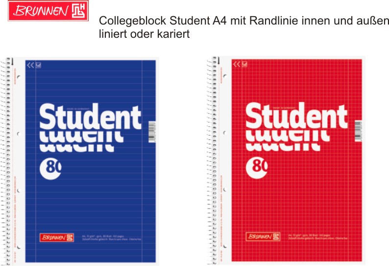 BRUNNEN Collegeblock Student A4 mit Randlinie innen und außen
