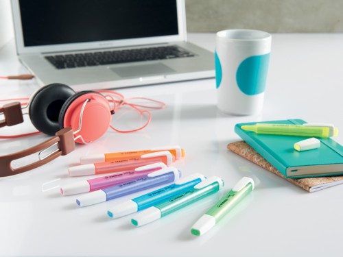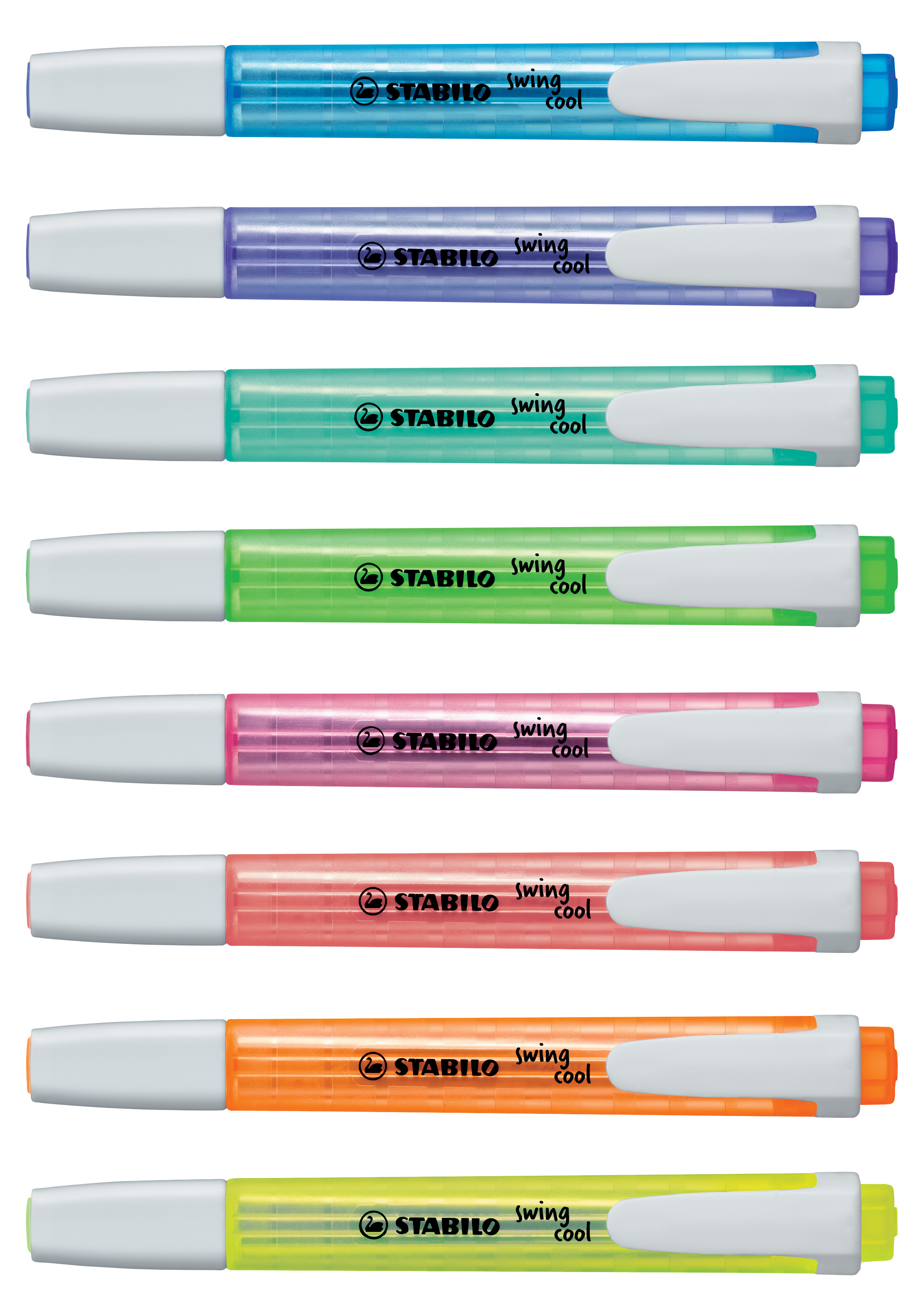 Dieser Textmarker ist mit seinem flachen Design und dem praktischen Clip unser Taschenmodell. In deinem Federmäppchen nimmt der Stift kaum Platz weg. Die Glanz-Optik mit Streifen-Look sieht cool aus. Die Kappe ist ventiliert und der Textmarker trocknet dank der STABILO Anti-Dry-Out- Technologie nicht aus, wenn du diesen bis zu vier Stunden offen liegen lässt. Auf diese Weise kannst du den Texten deine volle Konzentration widmen.