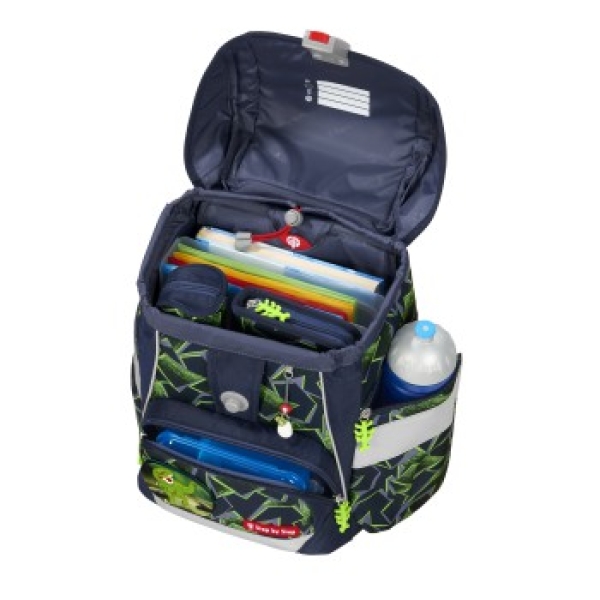 • Laschen zur platzsparenden Aufbewahrung des Federmäppchens im Deckel des Schulranzens