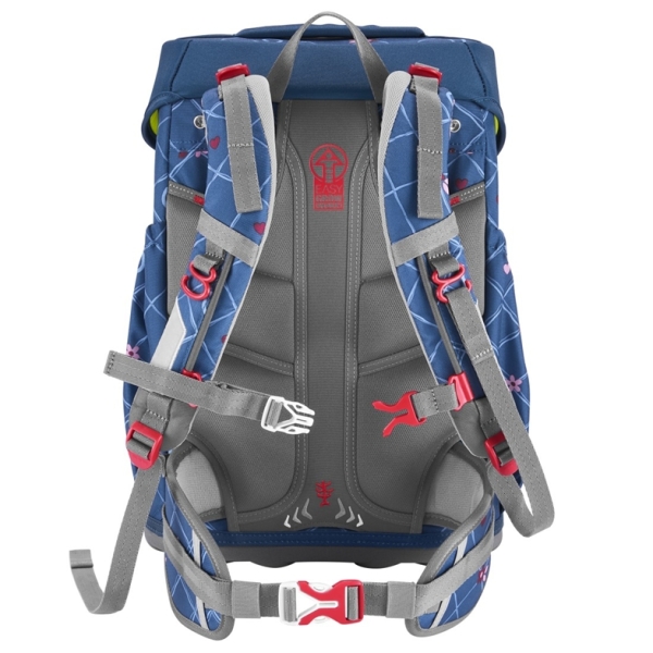 Das EASY-GROW System kann im Vergleich zu anderen Tragesystemen mit wenigen Handgriffen stufenlos verstellt werden, während das Kind den Schulranzen auf dem Rücken trägt. Dadurch lässt sich zeitgleich auch die optimale Passform feststellen.