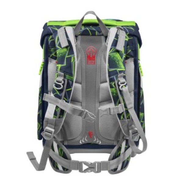 Der Space ist mit seiner altersgerechten Konstruktion ein Allrounder für alle Kinder von 100 - 150 cm Körpergröße, also der optimale Begleiter von der 1. bis zur 4. Klasse. In Hauptfach, Vordertasche und zwei Seitentaschen mit Auslaufösen passt von Schulbüchern bis zur Trinkflasche alles rein. Der geräumige Schulranzen bringt gerade einmal 1250 g Eigenwicht auf die Waage.