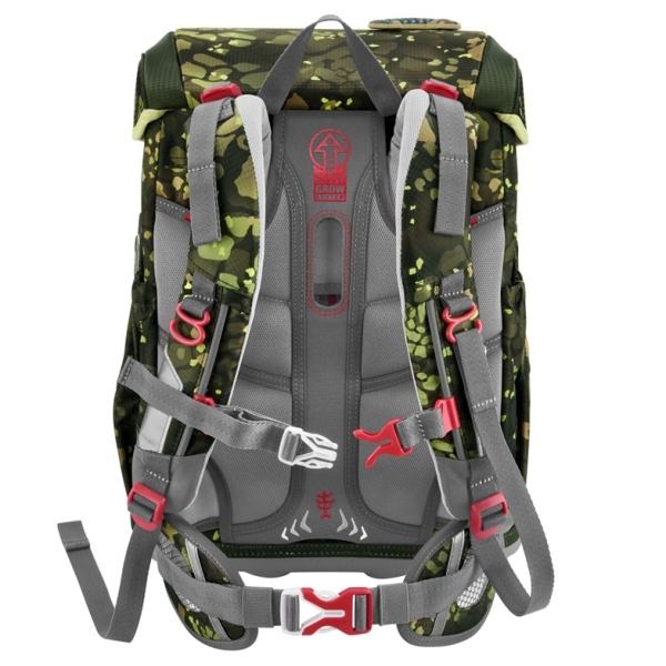 Das zentrale Element des EASY-GROW Systems ist der Drehgriff, welcher sich im Inneren des Schulranzens befindet. Dadurch lässt sich die Rückenlänge des Schulranzens individuell anpassen.
