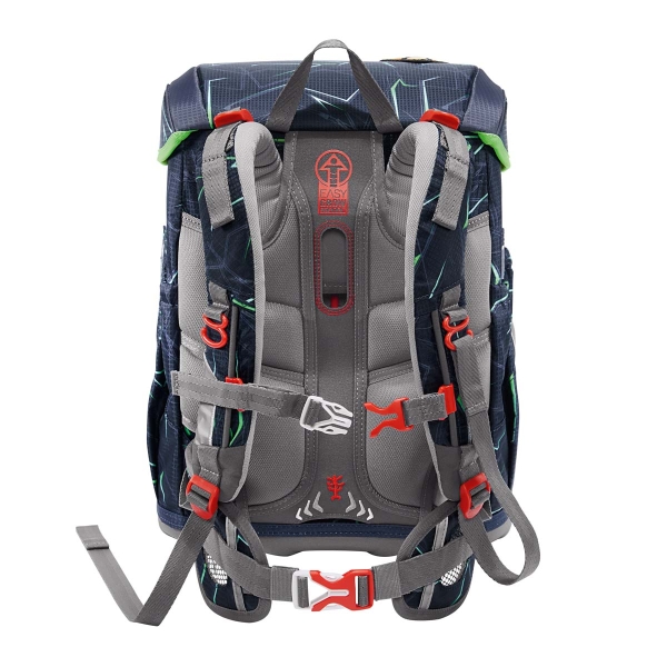 Das EASY-GROW System kann im Vergleich zu anderen Tragesystemen mit wenigen Handgriffen stufenlos verstellt werden, während das Kind den Schulranzen auf dem Rücken trägt. Dadurch lässt sich zeitgleich auch die optimale Passform feststellen.