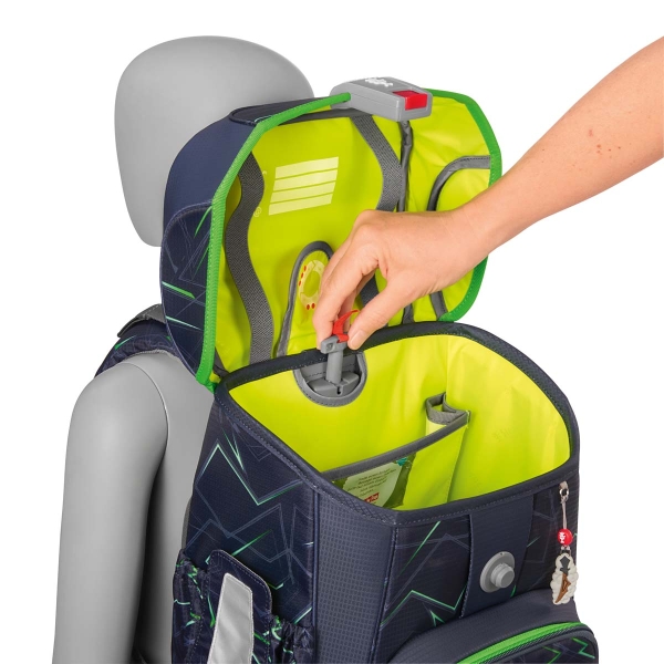 Das zentrale Element des EASY-GROW Systems ist der Drehgriff, welcher sich im Inneren des Schulranzens befindet. Dadurch lässt sich die Rückenlänge des Schulranzens individuell anpassen.