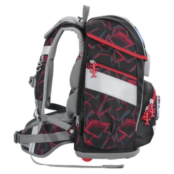 • Zwei Seitentaschen mit Reißverschluss und Auslaufösen. Die Seitentaschen wachsen nach außen, damit im Schulranzen- Inneren genügend Platz für Schulutensilien bleibt