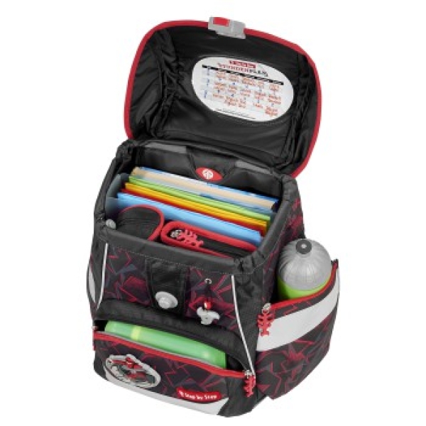 • Laschen zur platzsparenden Aufbewahrung des Federmäppchens im Deckel des Schulranzens