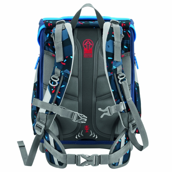 Der Space ist mit seiner altersgerechten Konstruktion ein Allrounder für alle Kinder von 100 - 150 cm Körpergröße, also der optimale Begleiter von der 1. bis zur 4. Klasse. In Hauptfach, Vordertasche und zwei Seitentaschen mit Auslaufösen passt von Schulbüchern bis zur Trinkflasche alles rein. Der geräumige Schulranzen bringt gerade einmal 1250 g Eigenwicht auf die Waage.