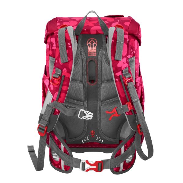 Das EASY-GROW System kann im Vergleich zu anderen Tragesystemen mit wenigen Handgriffen stufenlos verstellt werden, während das Kind den Schulranzen auf dem Rücken trägt. Dadurch lässt sich zeitgleich auch die optimale Passform feststellen.